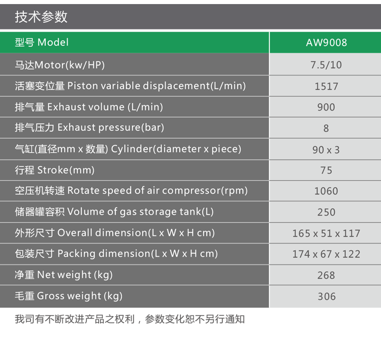 標(biāo)題:7.5kW/10HP 新型節(jié)能環(huán)保活塞式空壓機(jī) AW9008