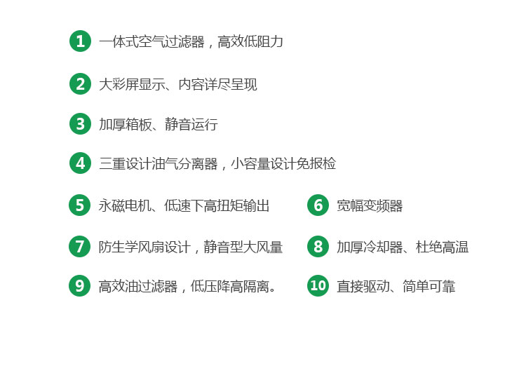 空壓機(jī)整機(jī)能效高于國(guó)家一級(jí)能效標(biāo)準(zhǔn),每產(chǎn)一立方的氣比行業(yè)大部分機(jī)器用電量少,氣量足,比行業(yè)基準(zhǔn)多10%,適應(yīng)惡劣工況條件,按24小時(shí)滿(mǎn)載運(yùn)行設(shè)計(jì)制造,將機(jī)械和電器完美融合。