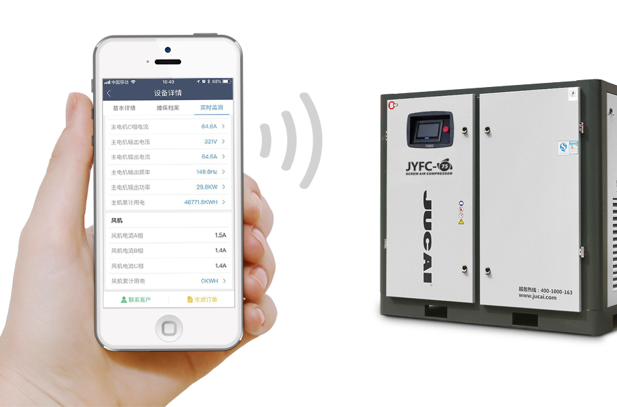 通過物聯網技術對空壓機設備進行全生命周期管理,遠程檢測,遠程管理,手機預警,數據采集等。