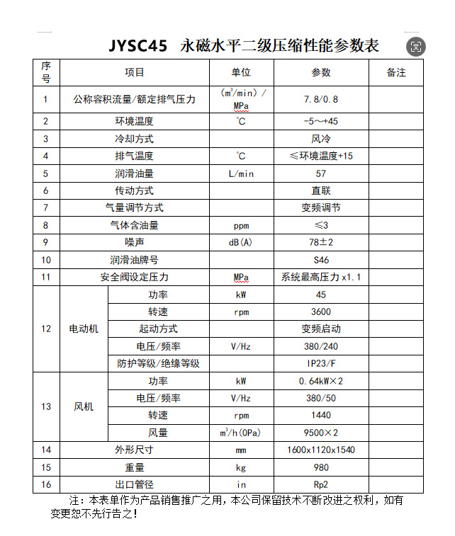 產(chǎn)品名稱:45kW 水平雙級直連永磁變頻空壓機 JYSC45