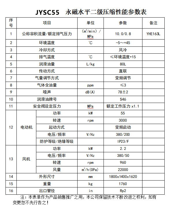 產(chǎn)品名稱:55kW 水平雙級直連永磁變頻空壓機(jī) JYSC55