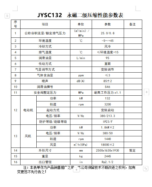 產(chǎn)品名稱(chēng):132kW 水平雙級(jí)直連永磁變頻空壓機(jī) JYSC132