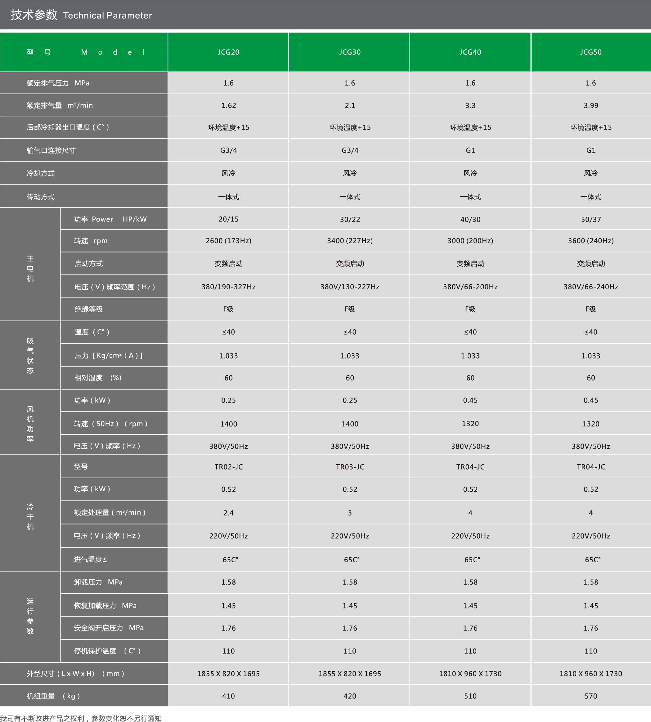 JUCAI螺桿空壓機主機,大轉子低轉速設計,采用先進的螺旋齒型技術,瑞典原裝進口SKF圓錐滾柱軸承,噪音低,能耗低。